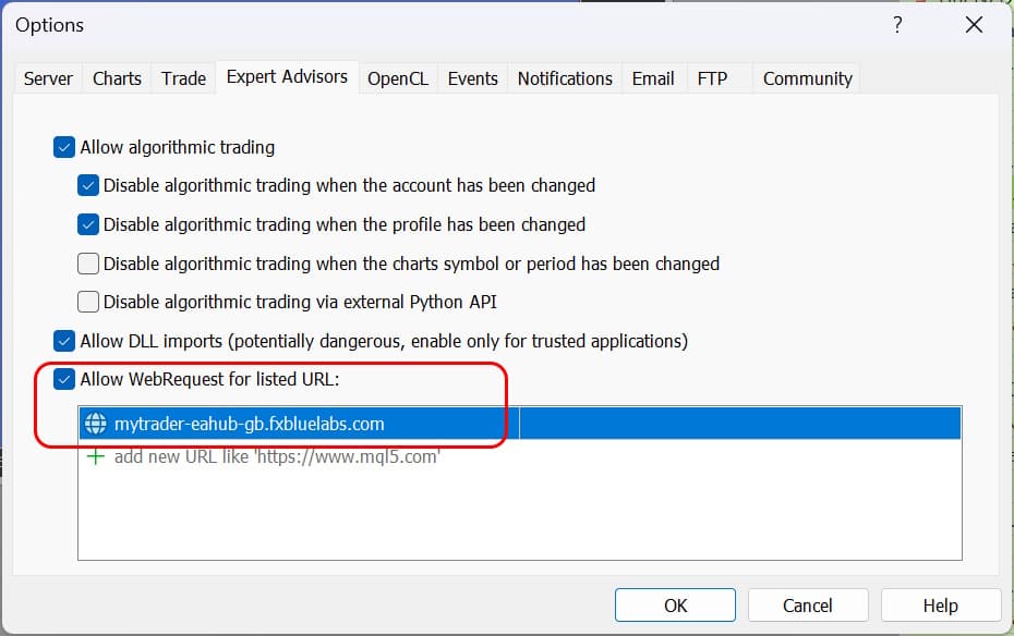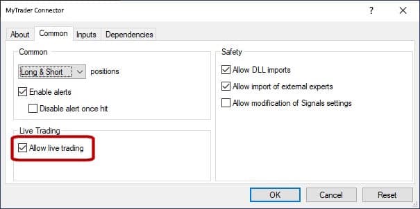 - MT4: the option is on the Common tab of the Settings window, and is called "Allow live trading"